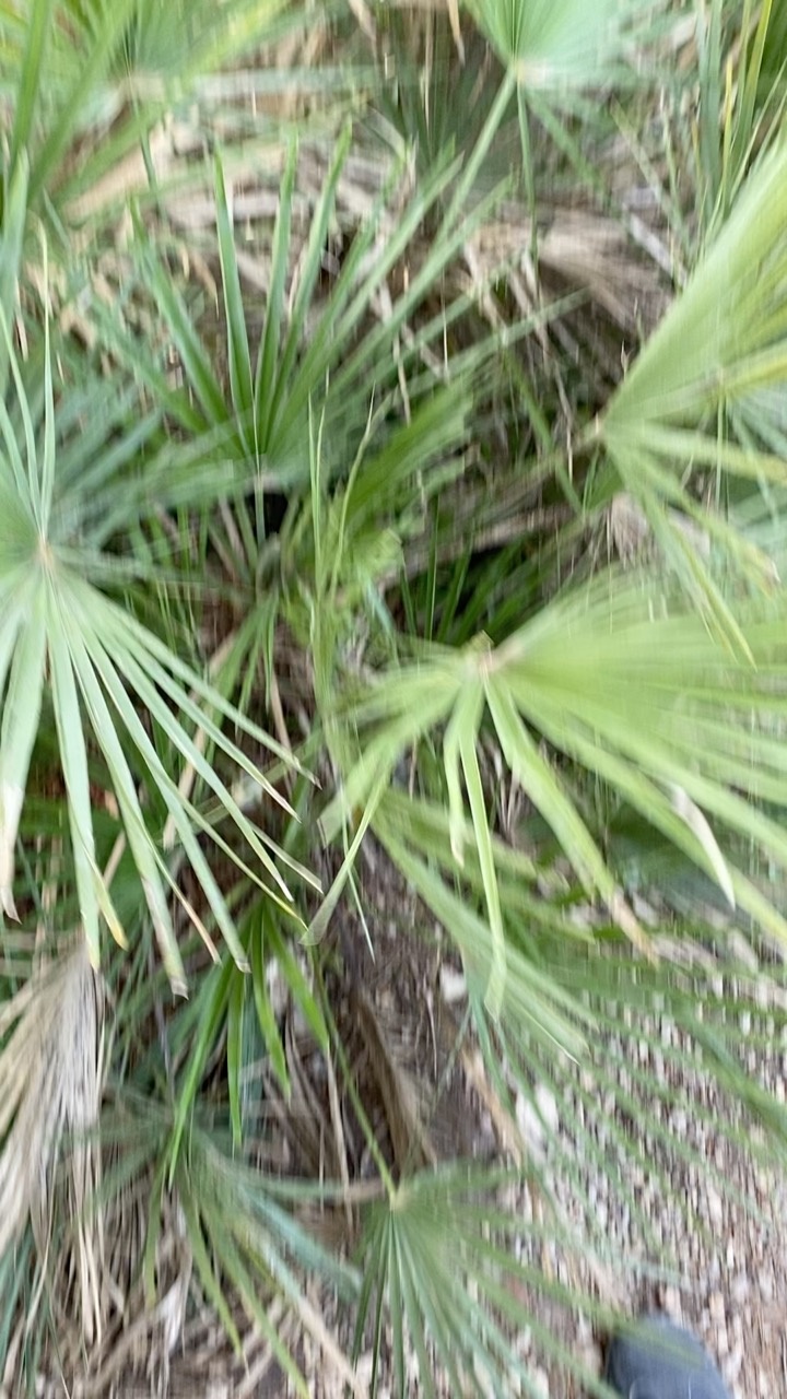 La imagen captura un denso grupo de hojas de palma en forma de abanico, cuyos vibrantes tonos verdes crean una atmósfera tropical y exuberante. Las hojas, con sus puntas afiladas y tallos delgados, se superponen y entrelazan, evocando una sensación de caos natural. El suelo debajo está salpicado de pequeñas piedras y hojas secas, lo que sugiere un clima cálido y mediterráneo típico de Mallorca. La luz que filtra a través del follaje añade un efecto suave y moteado, realzando el ambiente sereno y acogedor de este entorno verde.